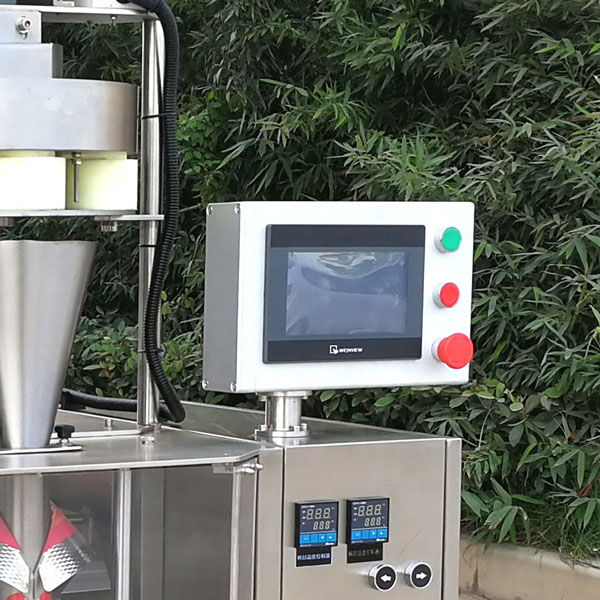 5、袋裝沖劑包裝設備采用觸摸屏和穩(wěn)定可靠的PLC控制,操作直觀簡單,制袋、計量、充填、封合、打碼、切袋一次性完成,運行非常穩(wěn)定;