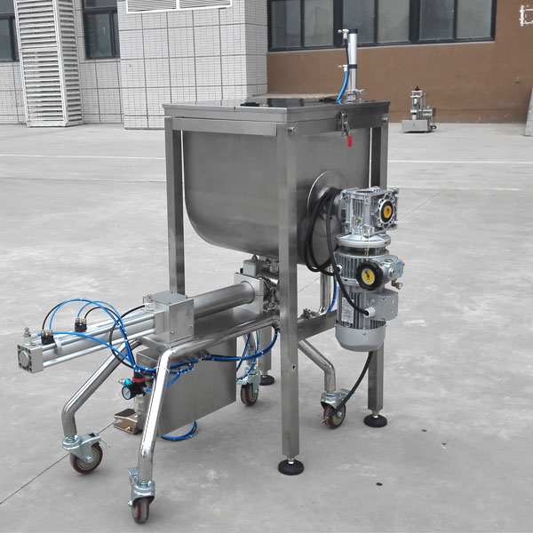 星火機械設計研發(fā)的半自動醬料灌裝機是一款廣泛適用于食品、化工、醫(yī)藥等行業(yè),特別實用于調(diào)味品種帶顆粒并且濃度較大的辣椒醬、豆瓣醬、花生醬、芝麻醬、果醬、牛油火鍋底料,紅油火鍋底料等粘稠醬類的灌裝的小型醬料灌裝設備。設備機型設計合理,機型小巧,操作方便,物料接觸部分均采用304不銹鋼材料制成,灌裝量調(diào)節(jié)手柄、灌裝速度可任意調(diào)節(jié),灌裝精度高。灌裝悶頭采用防滴漏、防拉絲及升降灌裝裝置。料斗帶有可調(diào)速攪拌裝置,使物料更均勻灌裝。臥式攪拌結構,保證了醬和油的充分混合,大大提高灌裝性能和計量的精度、